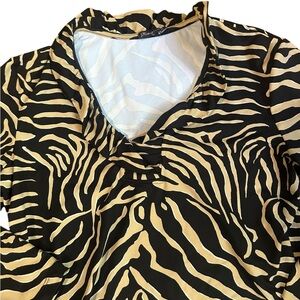 J. Mclaughlin zebra print Durham ruffled Catalina Cloth 3/4 sleeve tee Size XS