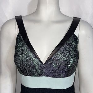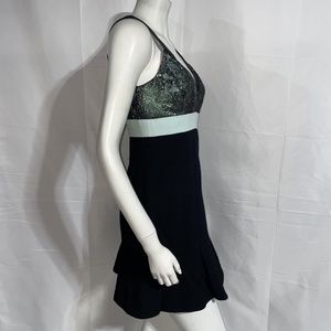 J Mendel V Neck Party Cocktail Mini Dress Black