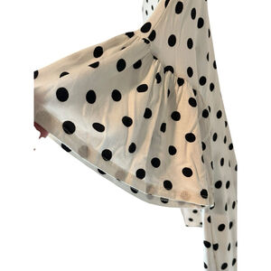 J Mode Blouse Womens Medium White Black Polka Dot Short Sleeve Round Neck
