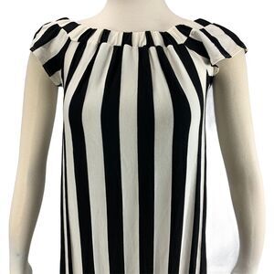J Mode NWT Small Black White Striped Dress Maxi d682 Stretch Rayon