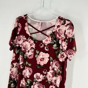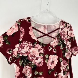 J Mode Size 2X Floral Short Sleeve Criss Cross Lattice Scoop Neckline Mini Dress