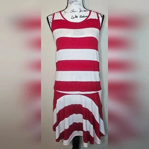 J Mode USA Women's Red & White Sleeveless Drop Waist A-Line Dress Sz Medium NWT