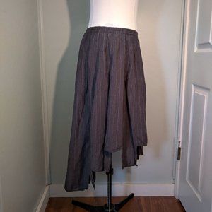 100% Linen dark grey pinstriped skirt with button side closure and a high/low dental style hem. Size XL. 18" waist, 26" front and 35" back lengths.