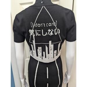 J Mujet X Designow Dress Cardigan Set. Size S. This unique cropped sweater set is adorable and in great condition. Bold graphic text print " i dont care " on front and back. Wear the pieces together or separate!