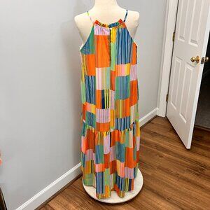 J. NNA Multicolor Patchwork Tiered Maxi Tank Colorful Dress Sz M