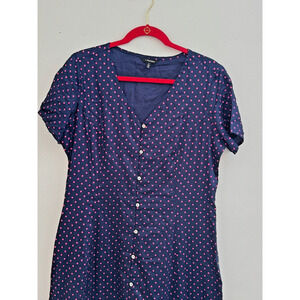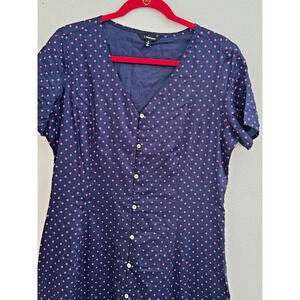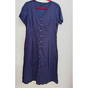 J. Peterman Navy blue and Pink Dot Fit and Flare Midi Dress