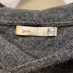 J Park woman’s grey cashmere and wool king sleeve sweater. Has a cool pocket on the front of the sweater. It’s a size 1.