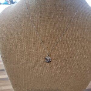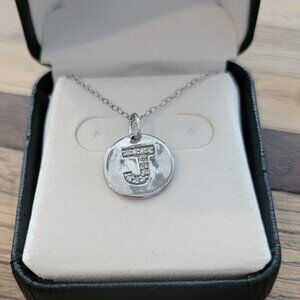 J Pendant Necklace in Silver Tone Metal w CZ Accents