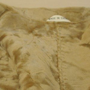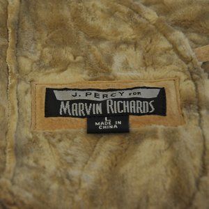 Coats shell is genuine leather, lining is 100% Acrylic Face, backing is 100% polyester. Has 2 pockets that are 5" deep with a 5" opening. Coat size is Large.