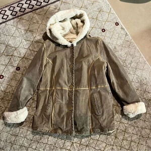 J Percy For Marvin Richards Womens 1X Suede Leather Faux Fur Lined Coat Boho