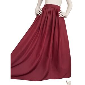 J Peterman 100% Silk A-Line Maxi Skirt Size 10 Burgundy Holiday Elegant