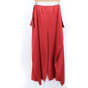 J Peterman 100% Silk Palazzo Wrap Pants Low Crotch High Rise Wide Leg Buttons M