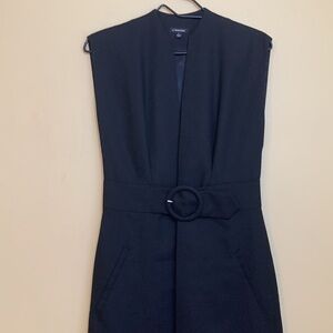 J. Peterman | Black Surplice Pocket Vested Poly Wool Fully Lined sleeveless Dress in size 4.