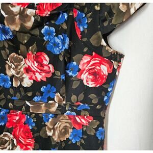 J. Peterman Cap Sleeve Floral Sheath Dress Size 22 Plus Retro Cotton Fitted Plus