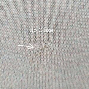 Pre Loved with no pillings, 1 small snag repaired front center of short sleeve sweater. It's not visible when worn with Cardigan, and there are no flaws on Cardigan.