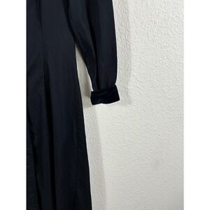 J Peterman Company Dress Womens 6 Navy Blue Velvet Collar Cuffs Long Midi A-Line