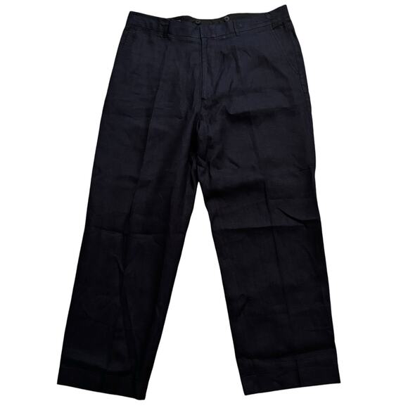J. Peterman Company Navy Blue Flat Front Linen Cuffed Dress Pants