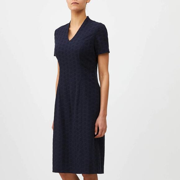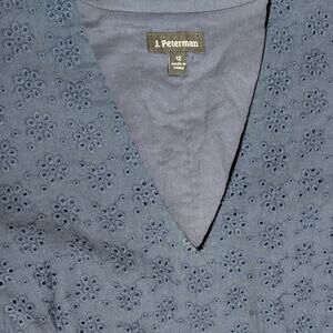 J. Peterman Eyelet Sheath Dress Navy Blue Knee Length Womens 12 Short Sleeve