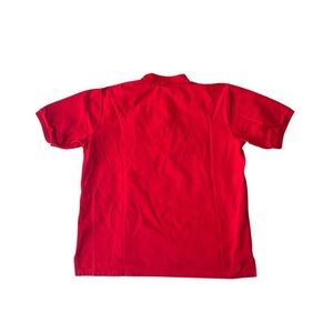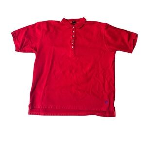 The J Peterman Men's XL Red Polo Shirt is a heavyweight, casual golf shirt perfect for a day at the beach or a round of golf. Made from 100% cotton, this breathable knit shirt features a spread collar with a button closure, short sleeves, and a solid pattern in a vibrant red color. Small paint mark - see pic.