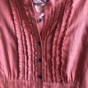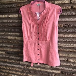 J. Peterman Pink Linen Sleeveless Blouse W/ Ruffle