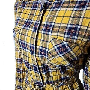 J. Peterman Plaid Shirt Dress Yellow Black Flannel Tie Waist Medium Long Sleeve
