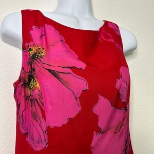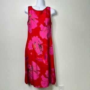 J Peterman Red Floral V Neck Sleeveless Midi Dress Women’s Size 4