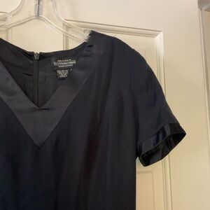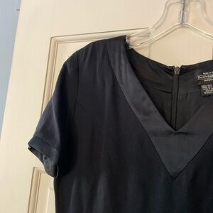 J. Peterman Silk Maxi Dress Black Short Sleeve Back Zip Shoulder Pads Size 4