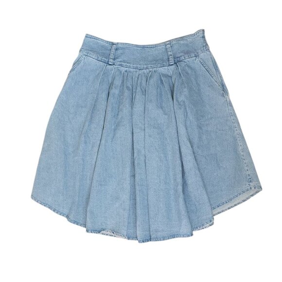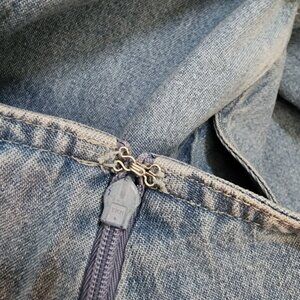 J. Peterman Skirt Womens Size 12 Blue Denim Pleated A Line Pockets Cotton Zip Up