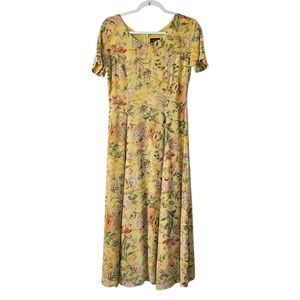 J. Peterman VTG 90's Silk Floral Yellow Fairy Whimsy Romantic Dress 4