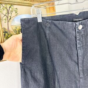 J. Peterman Wide Leg Denim Trouser Pants Size 14 Cotton Blend Stretch Black Wash
