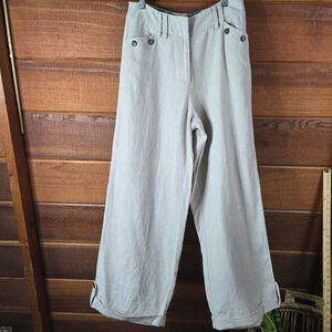 J Peterman Women Wide Leg Sailor Pant 8 Linen Blend Minimalist Coastal Fisherman