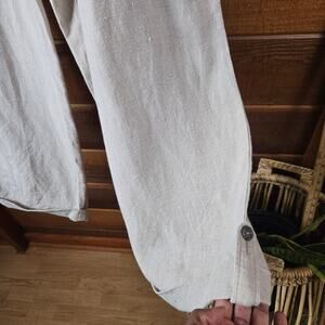 J Peterman pants, women’s beige trousers, linen blend wide leg pants, button cuff pants, neutral work pants, relaxed fit trousers, classic style pants, vintage pants, timeless women’s bottoms
