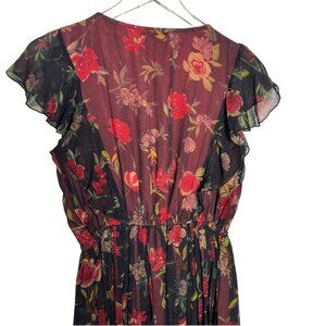 J. Peterman Womens Floral Midi Dress V-Neck Ruffle Sleeves Size 6 Red & Black