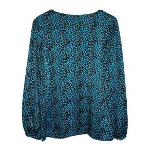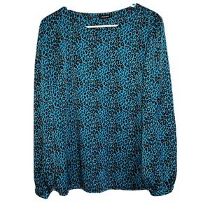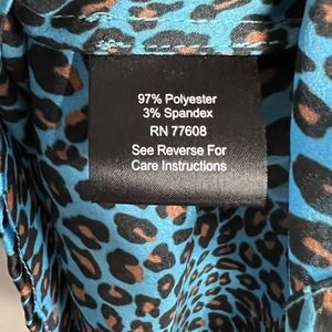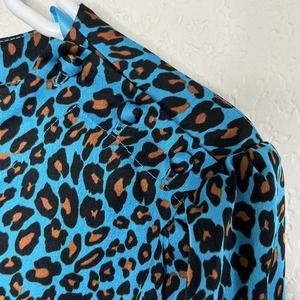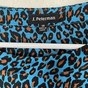 J Peterman shirt Blue Brown Leopard Animal Print Top Size 14 Career Office Ad2