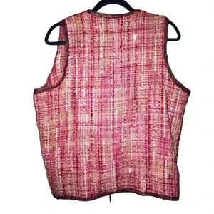 J. Peterman vintage pink silk wool woven vest floral tie closure