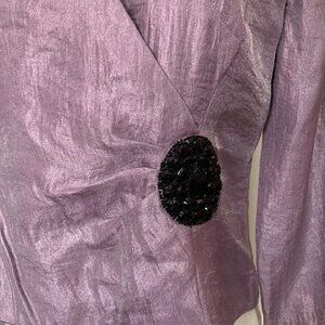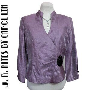 J. R. Nites By Carol Lin Top: Beautiful shimmer top has a beaded embellishment on the side of a gathered waist, 3/4 sleeves, back zipper, light shoulder pads. Style 42882R.