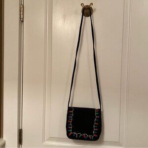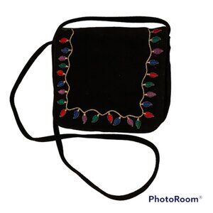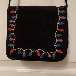 J. RENEE BAG CROSSBODY SHOULDER BLACK SUEDE FLAP EMBROIDERED CHRISTMAS LIGHTS