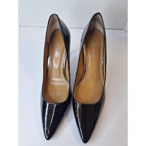 J RENEE Maressa Pearlized Black Patent Leather Pumps Heels Sz 9.5M Mob Wife Goth