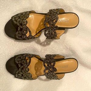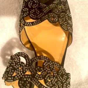 Bought these shoes to take on a cruise. Probably wore them twice. Shortly after the cruise was over I had an accident damaging my left foot, so never could wear them again. They are very dressy with snazzy stones to make them sparkle. (Written for my wife.)