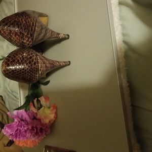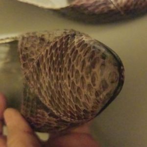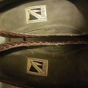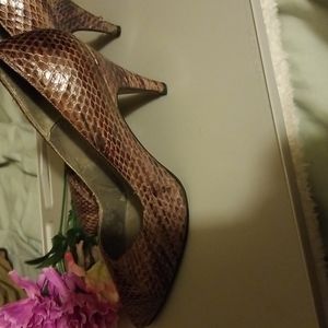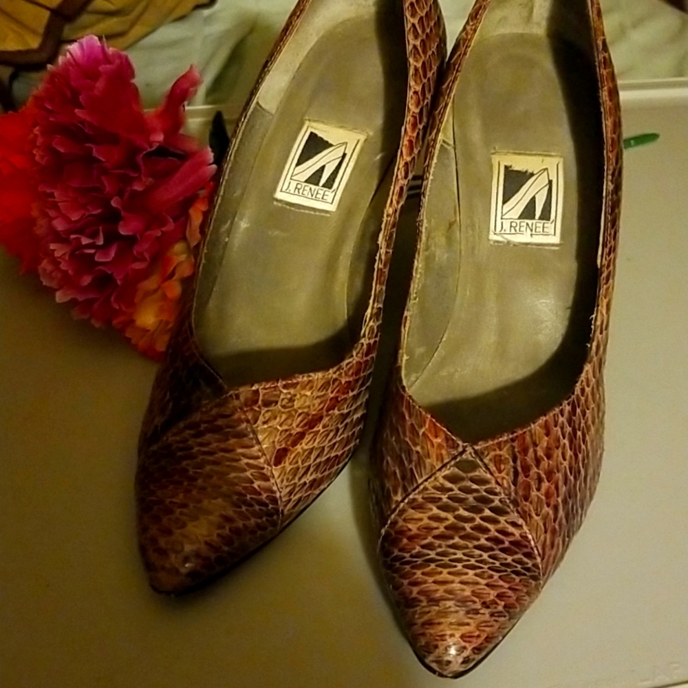 J. RENEE SHOES, DONT KNOW IF IMITATION OR SNAKE SKIN....GOOD CONDITION... LITTLE SCRATCHES ON ONE HEEL AND FRONT OF SHOE AS SHOWN IN PICTURES... SIZE 5.5 - 6M... BIN CLEAR