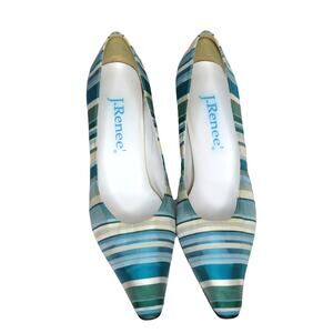 J. Renee 1980s Vintage Satin Blue Striped Vintage Heels Pumps Size 7 Retro