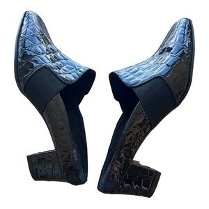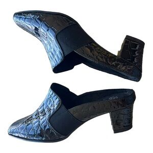 J. Renee Alana Black Embossed Croc Slip On Closed Toe Mules with 2” heel