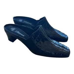 A Casual to Dressy Slip On Mules by J.Renee Black Alana Embossed Croc Slip On Closed Toe 2” heel with great stretch
