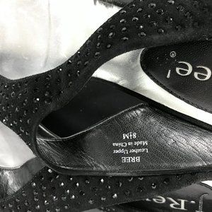Elevate your style with these J. Renee black leather kitten heel pumps. Perfect for special occasions, these pumps feature sparkle studded leather and classic design for easy wear. The 1 3/4 inch kitten heel provides a comfortable lift, making them ideal for all-day wear. The synthetic outsole ensures durability while the leather upper and insole add a touch of luxury to your feet. These pumps are a size 8.5 and have a medium width. With their timeless style and high-quality craftsmanship, these J. Renee pumps are sure to become a staple in your shoe collection.