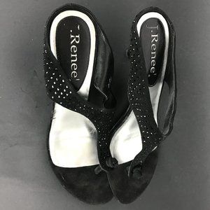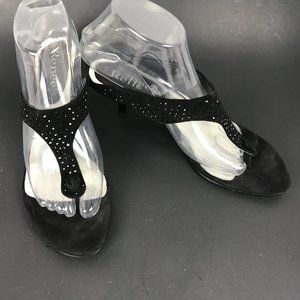 J. Renee Black suede studded leather thong sandal kitten heels US 8.5