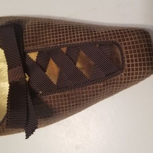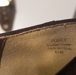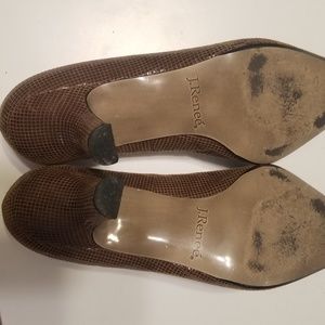 Low Heels worn maybe 5 times. Very cute. I just don't wear heels much anymore. They are too adorable to not be living a better life. No major defects, rips or stains, some scuffing on the bottom and near the heel.