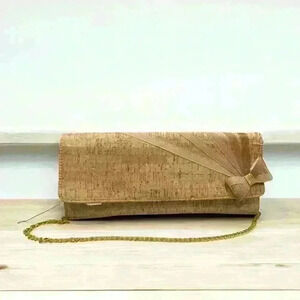 J.Renee Cork clutch. NWT comes with a removable Gold shoulder chain. hangs no more than approx 20" from shoulder. 3 pockets inside. Purse is approximately 13"x5"
