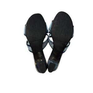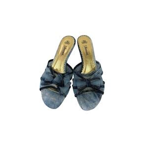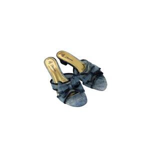 J. Renee Freesia Blue Mesh Fabric Open Toe Kitten Heels Bow Accent 9 N Narrow