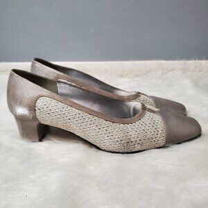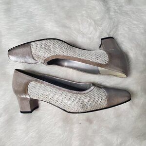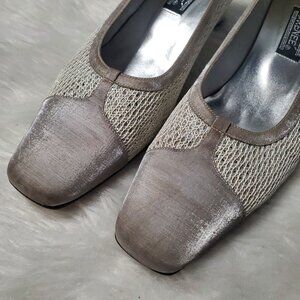 J Renee Gold/Silver Satin/Mesh Glittery Formal Block Heel