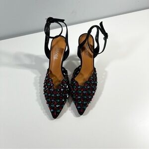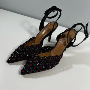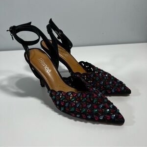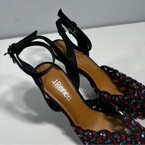 J. Renee Kamilo Black Satin Rhinestone Pumps